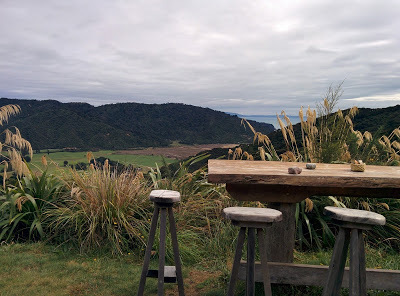 Some accommodations in this part of New Zealand are only accessible by float plane. I wish I were telling you about how we took a float plane to one such location, but neither time nor budget permitted that. Instead, we went to the moderately more accessible Anikiwa, a tiny little gathering of homes on the edge of the deepest tip of the Queen Charlotte Sound. We stayed in a delightful place called Anakiwa 401. This place is like a back-packers for grown ups in that it had the communal kitchen like you'd share in a back packers, but we had our own en-suite and access to our room from outside. The decor was charming, as were the owners and their fur family! To top it all off, we lucked out and were the only ones staying that night, so we basically had the run of the place.