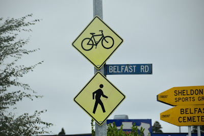 You can walk and cycle on the Belfast road (perhaps on your way to the cemete...ry? I guess...)