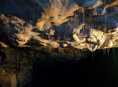 The tour begin with a walk through the caves. We were all given helmets and head lamps. At various points we were instructed to turn off the lights to feel the developing darkness that only underground caves can offer.