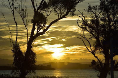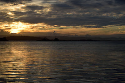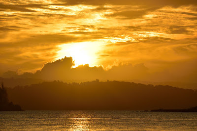 By the time we'd shopped for supplies,the sun had begun to slide toward the horizon. When we reached the lagoon the world was bathed in golden light and this was the sight that met us.