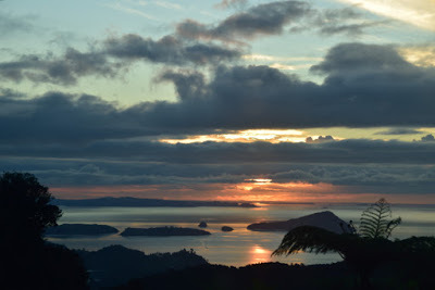 The Holiday Park itself had very little going on. The sea was very rough - still roiling after that storm that had flooded Franz Josef the week before, and the beach was covered in a very high tide. There was nowhere to buy food. We had to go to the next town about 15 minutes drive away to find food to cook up in our self catering unit. While we were in good cellphone coverage territory we got a text message. Our trip the following day to White Island was cancelled because of bad weather. Ironic really since we'd been in New Zealand's rainiest place - Doubtful Sound and had had clear blue skies. Now in the sunniest place we had rain and storms!