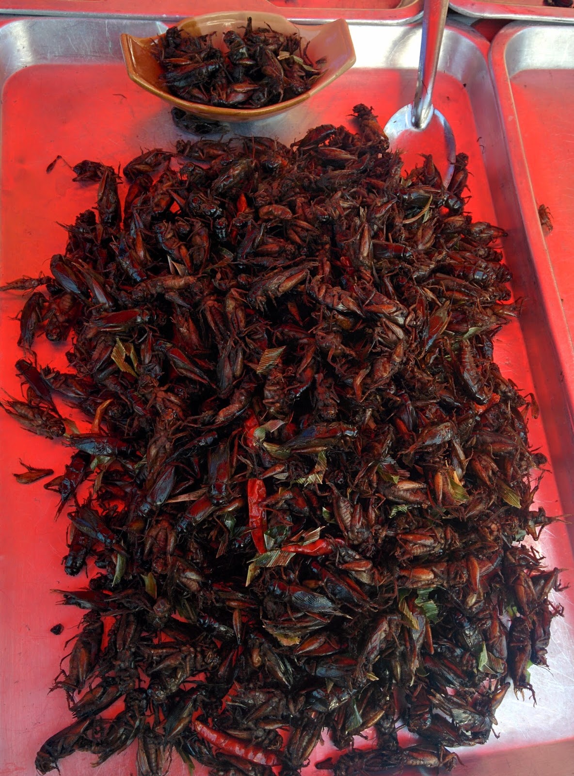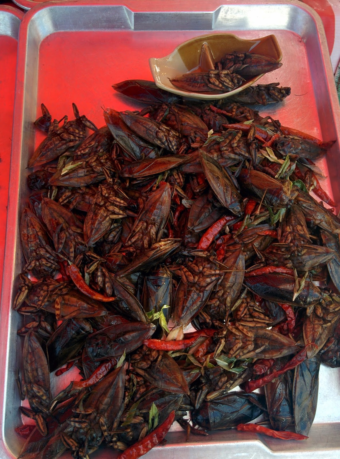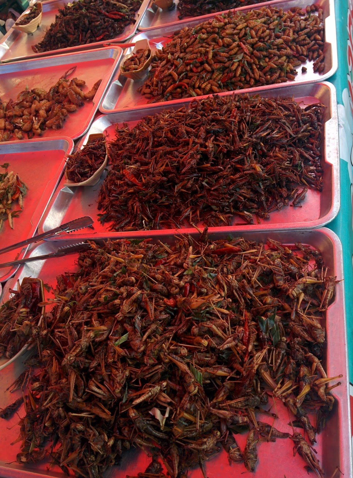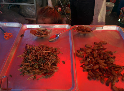 We explored the whole island over the course of four hours and stopped for lunch on the beach - as ya do! The other couple went off and had a swim before our driver brought us all back to the tender. It was a pretty blissful day.The line to the tender was enormous. We decided to have a look around the local market stall not far away while keeping an eye on the tender queue. These delicacies were on offer - bugs!