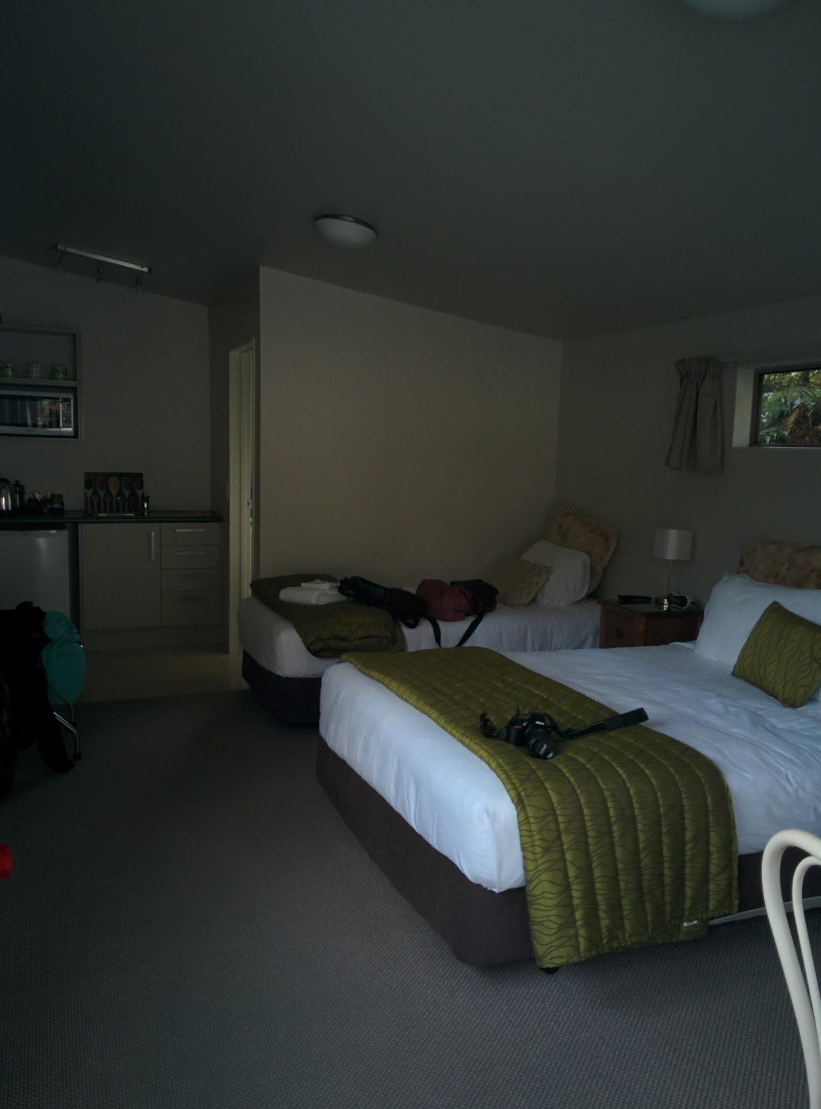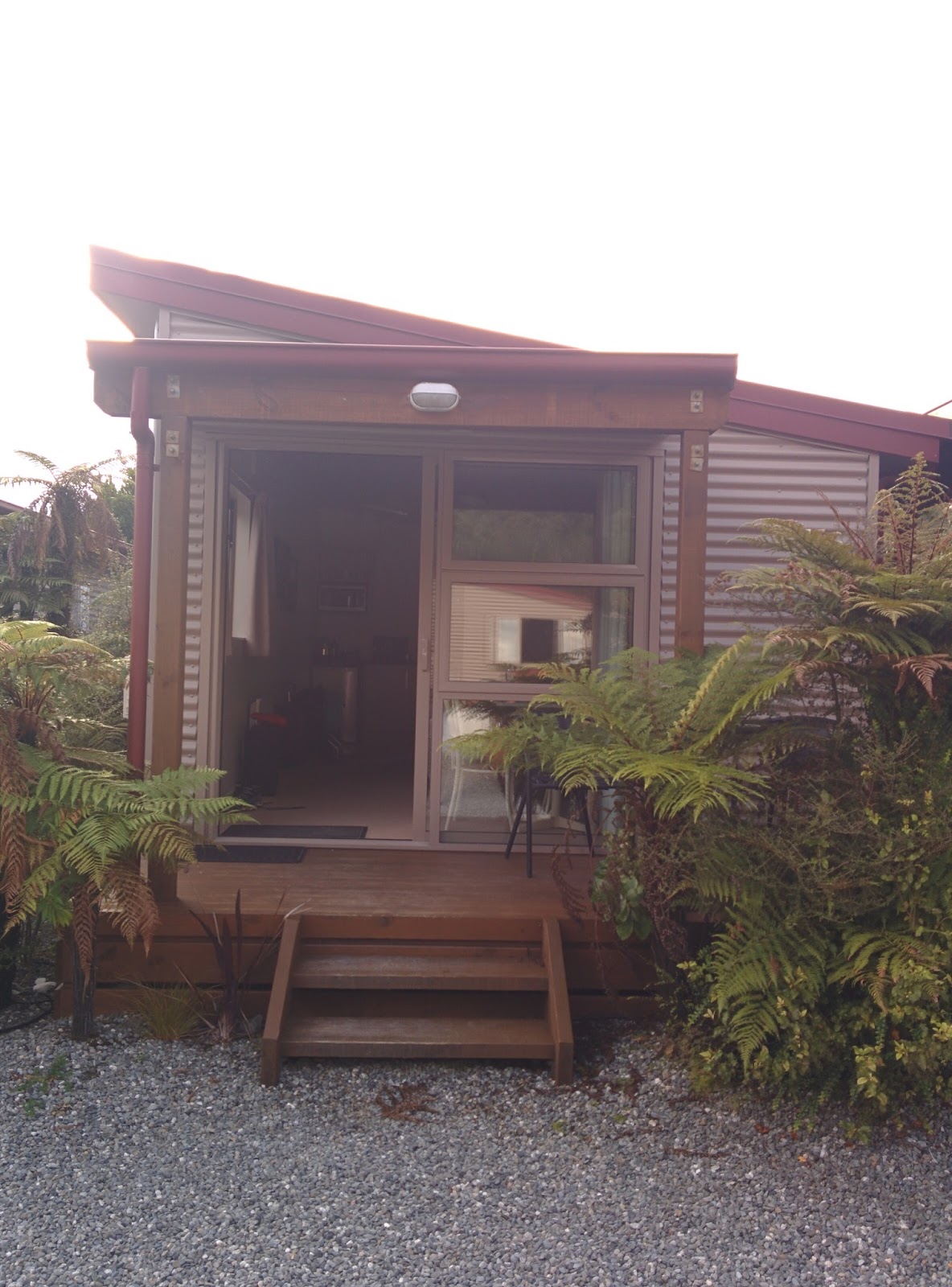 My pictures don't do the place justice - but do hop over to the website for the accommodation here if you'd like to see better pictures.The next morning we awoke to broken weather! The clouds had moved all the way down to street level. A fine drizzle of rain would make a hike uncomfortable and we'd not get a good view of the Franz Josef Glacier anyways.