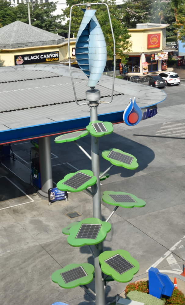 We reckoned that if everyone from the cruise (there were about 7 bus loads of us) was going to do that we'd reverse it, grab a cab from the hotel to the Palace and work our way back on public transport. We'd pulled out Thai Bat from an ATM at the service stop en-route where we also saw these cute solar panels.