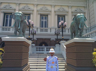 I liked seeing the guards. The elephants were so Thailand!