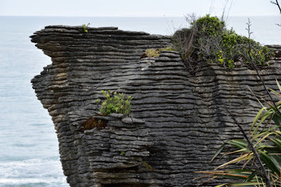 The main attraction at this stop is Pancake Rocks. Layers of limestone rocks have been eroded and shaped by rain and ocean into what looks like ... you guessed it... stacks of pancakes.