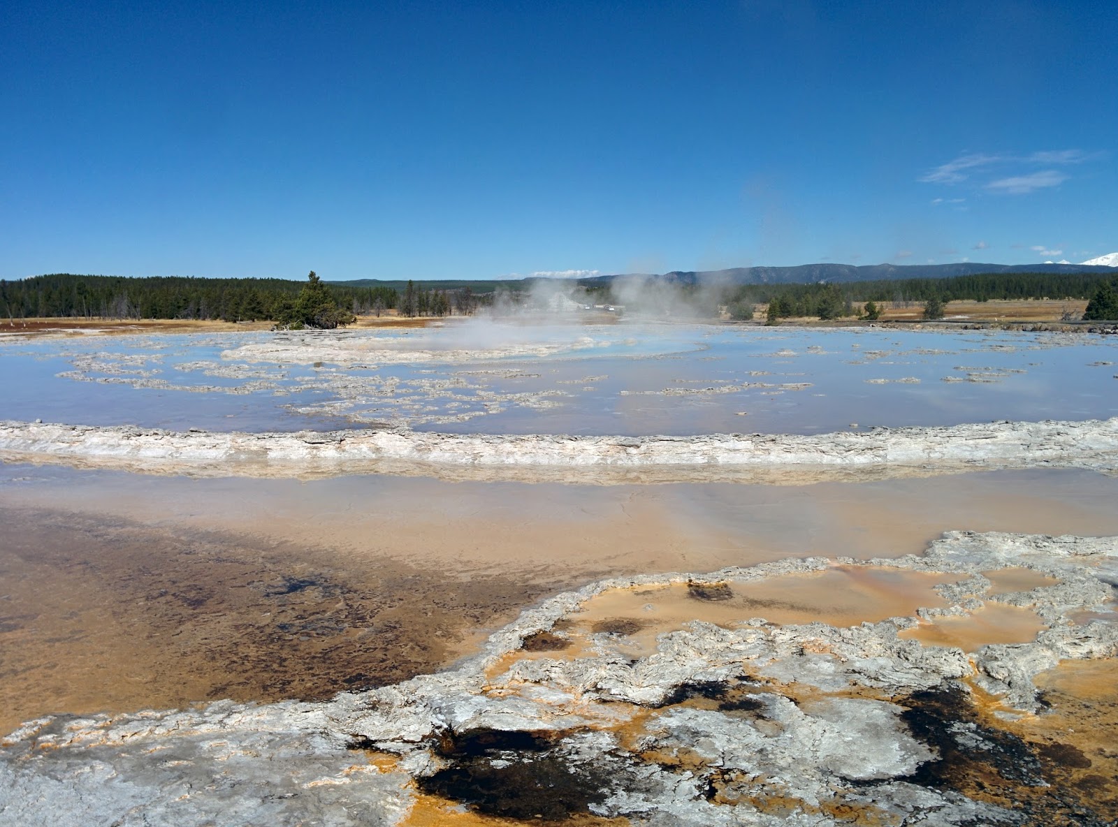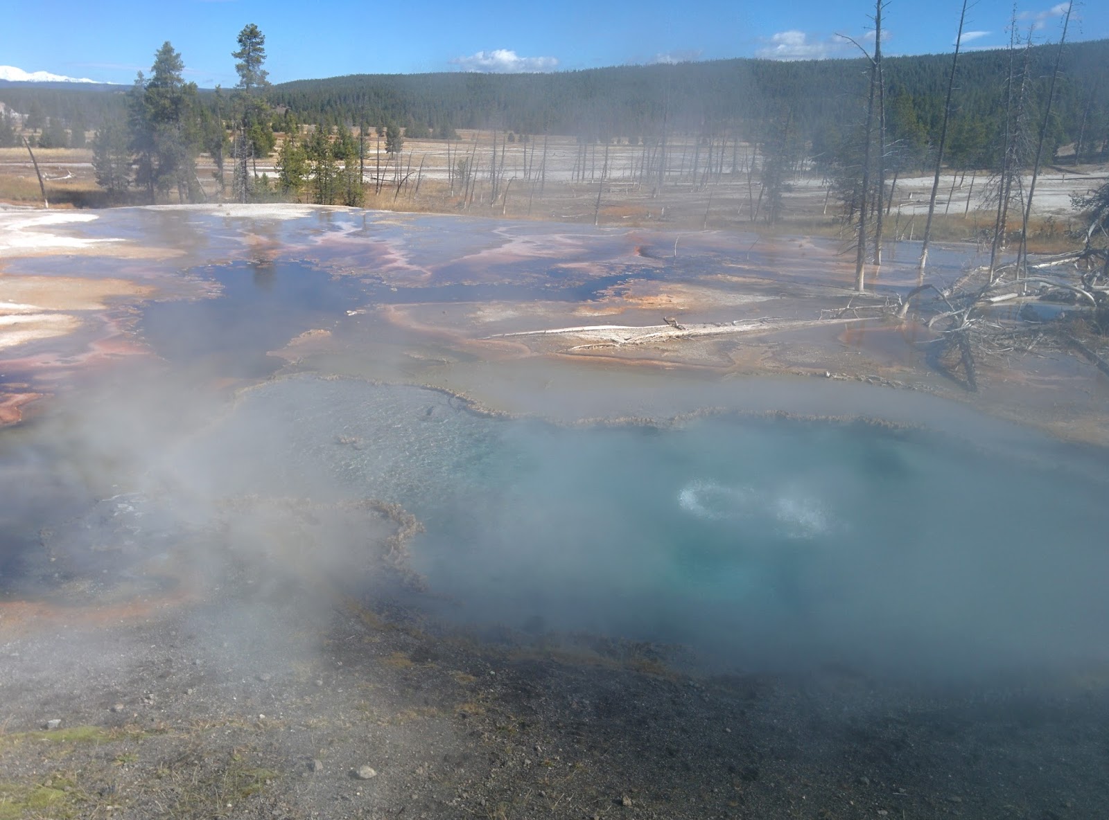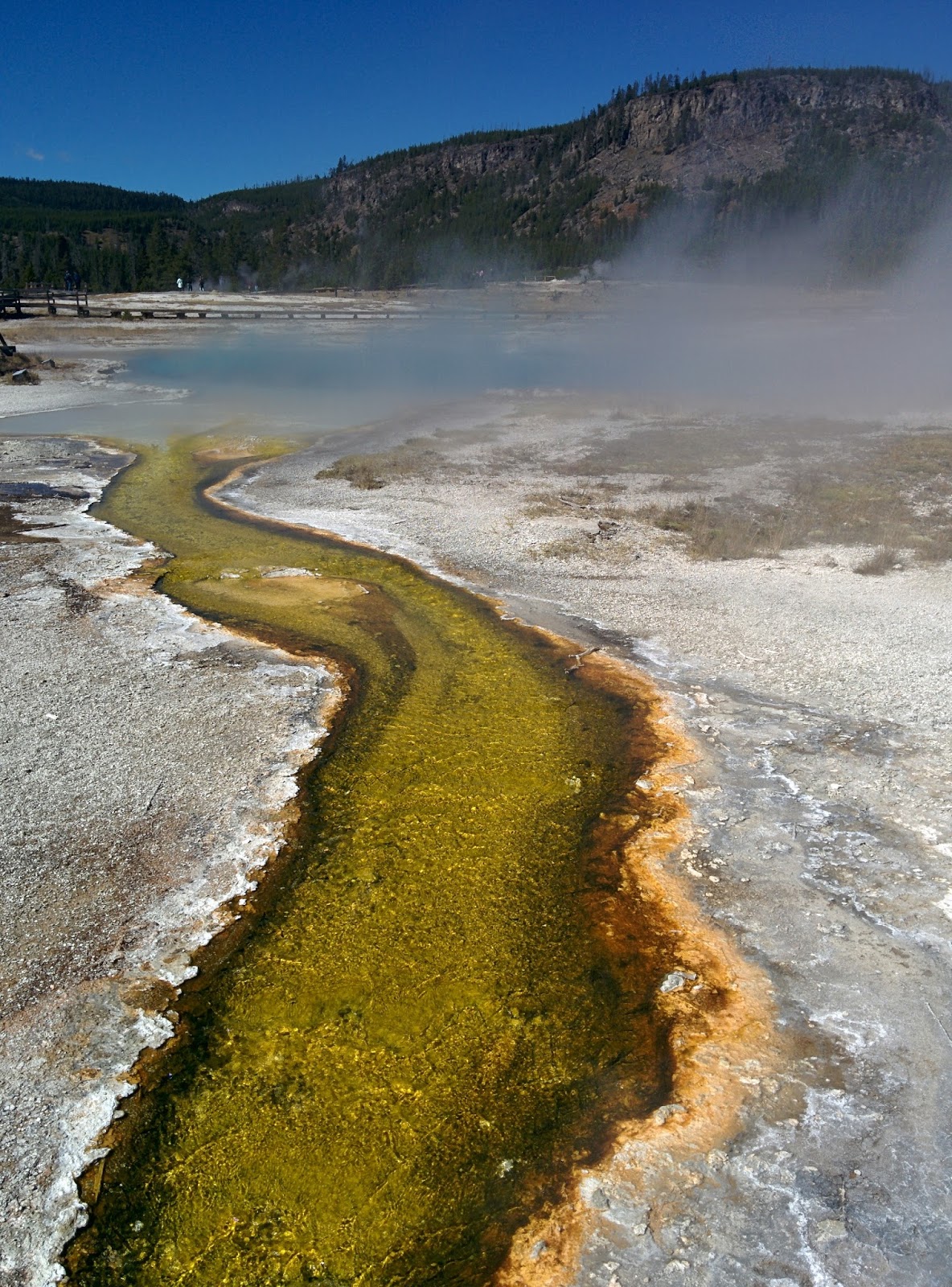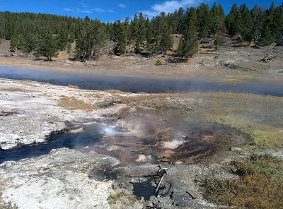 Biology is amazing – today I was glad I was a biologist as I took in the wonderful colors of the thermophile bacteria that turn the hot springs a rainbow of colors.
