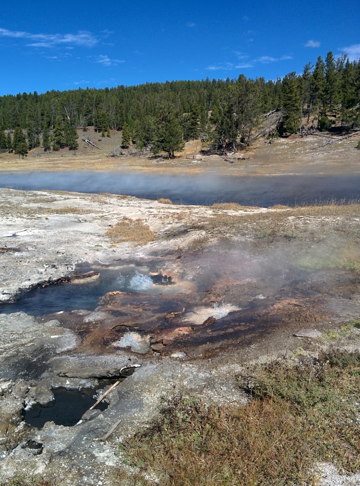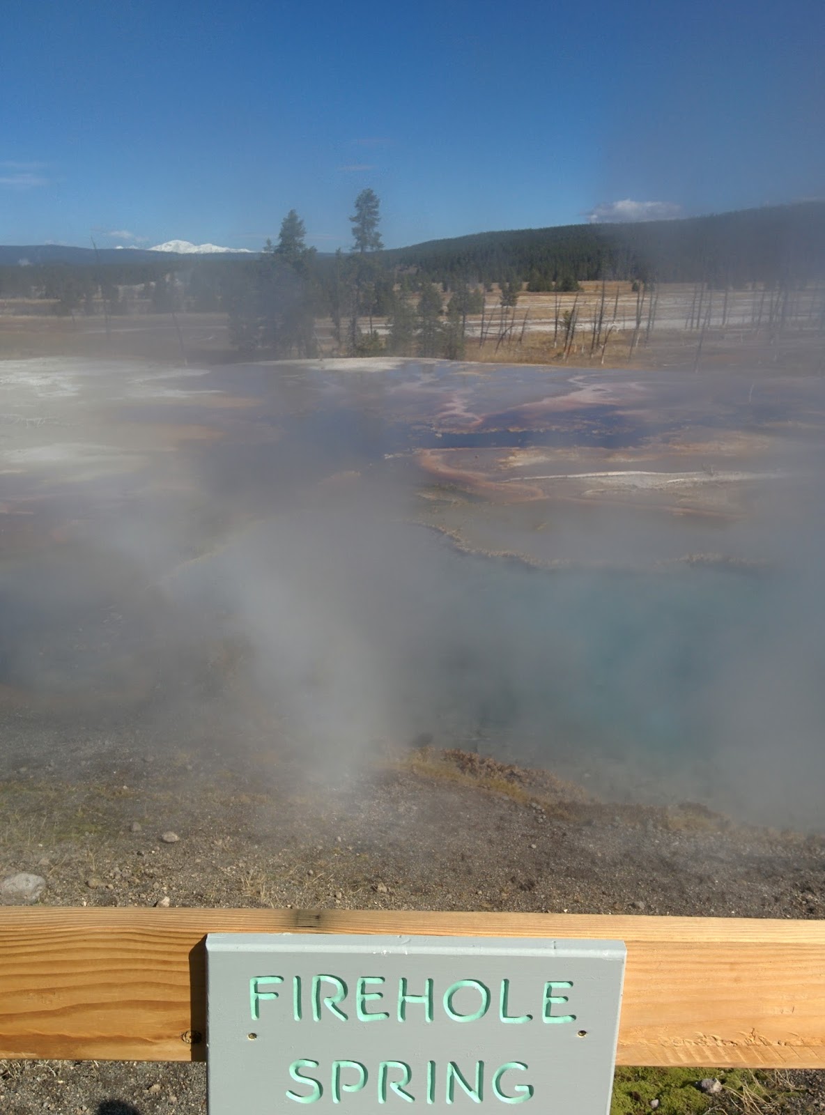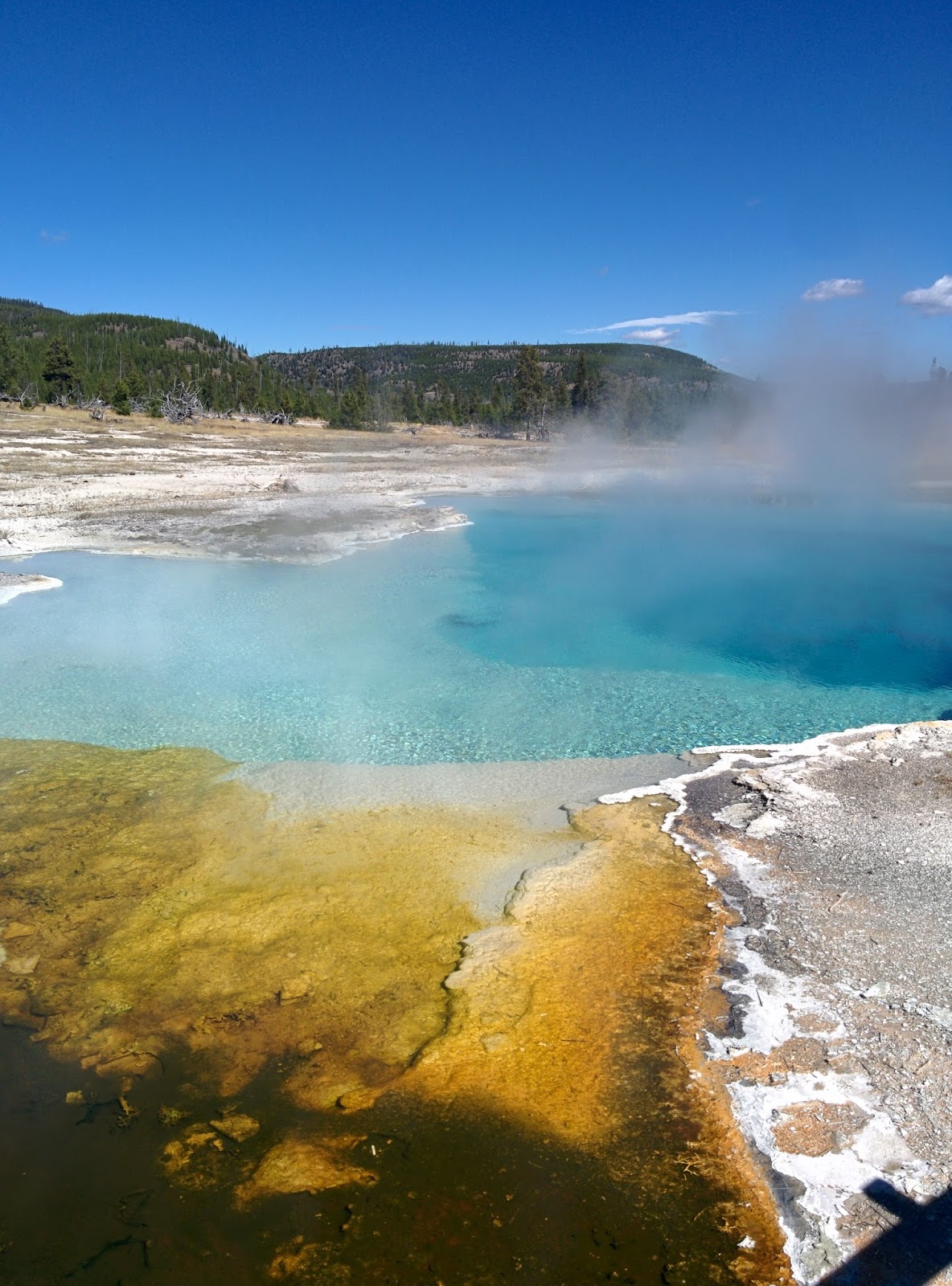 Biology is amazing – today I was glad I was a biologist as I took in the wonderful colors of the thermophile bacteria that turn the hot springs a rainbow of colors.