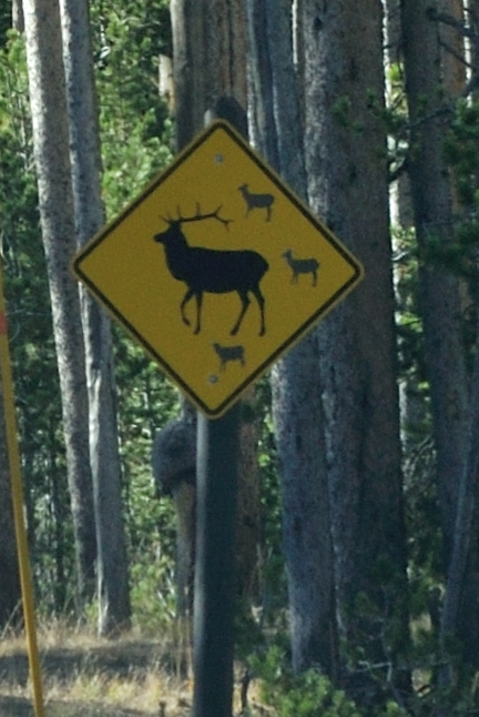 Onwards and northwards - we entered Yellowstone's South Entrance and didn't bother stopping for the photo of the park sign since there was a line of people waiting to get their pictures taken with it! This was indeed a taste of things to come.But no-one seemed too interested in this sign - one that for geeks like us was of great curiosity.