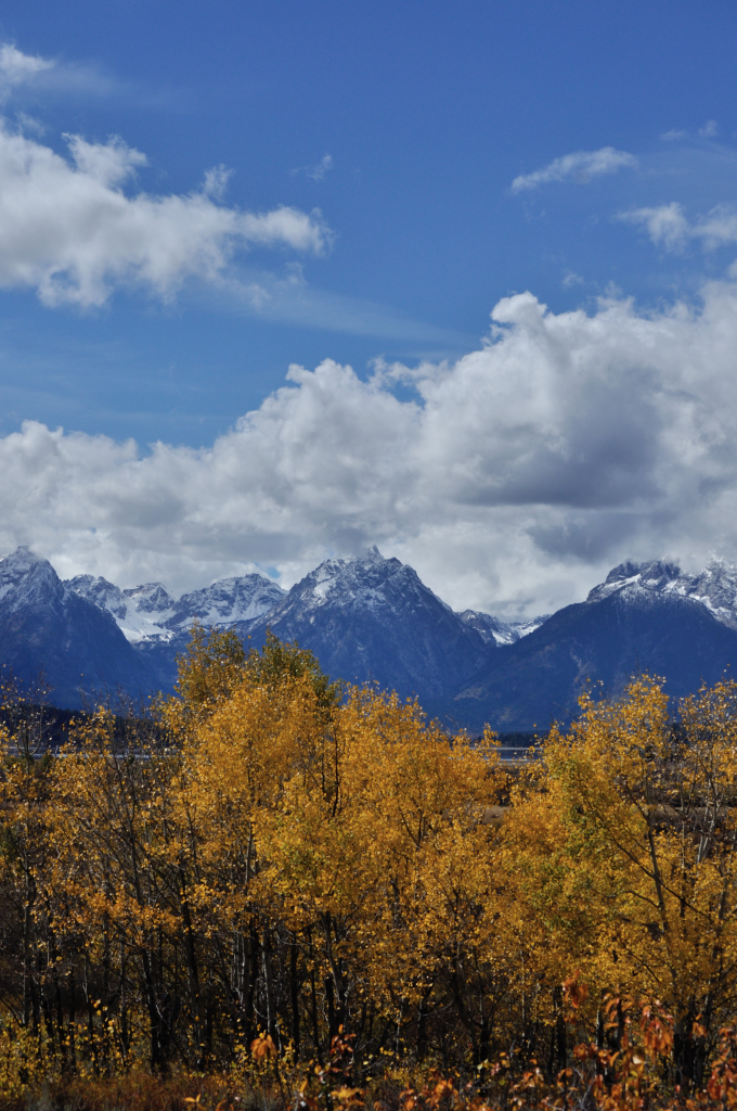 The Tetons were still shrouded in shards of mist, as if like cotton wool balls, the clouds had become stuck on the peaks and then shredded as some celestial hand had tugged them off too hard.