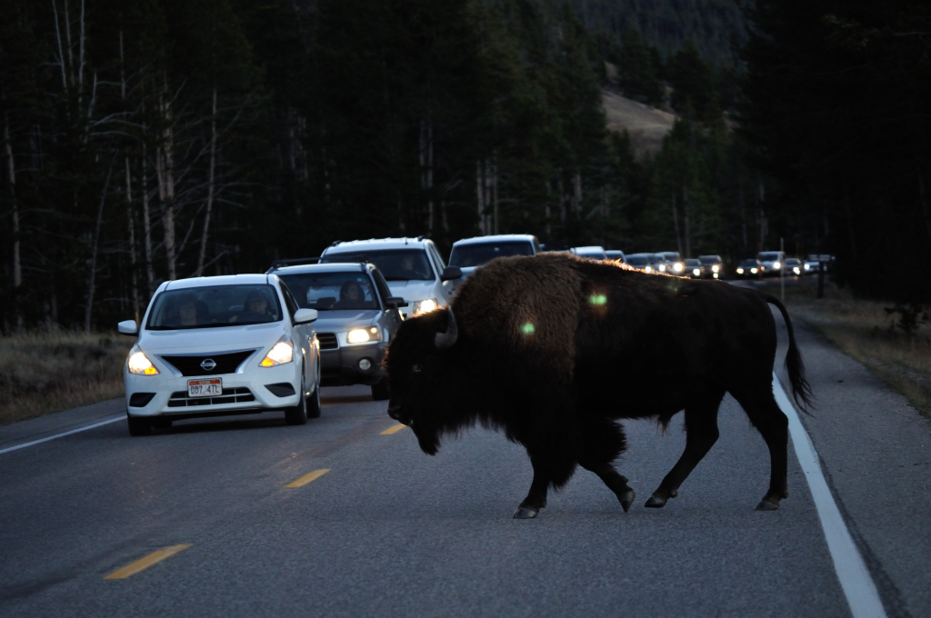 Getting a picture of a bison in Yellowstone is as easy as tripping over a bump on the road.
