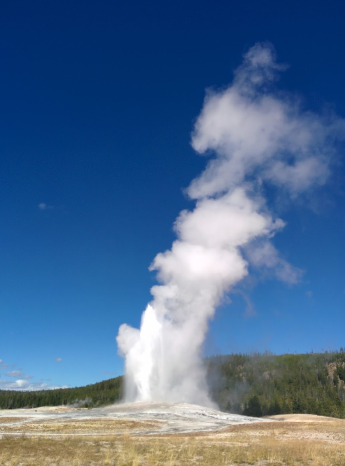 Geysers and hot springs are created when water seeps down into rocks that are super heated by magma chambers close to the earth’s surface. The steam rises and causes the super heated water to squirt out of cracks and pipes in the rocks. Yellowstone is the site of a super volcano. Its next explosion, due sometime in the next 200, 000 years, will pretty much wipe out life as we know it in North America and drastically affect the climate in the rest of the world for a long time afterwards. But not to worry, we probably won’t be around for that!