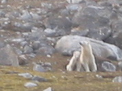 We were told that the signage convention required that the animal, regardless of its color, be in black, the background in white, with the red trim. When they did that, people kept asking, "Do you have black bears as well as polar bears?" So to avoid confusion, and since they had no black bears, they broke with convention and made these signs. I think it conveys the message very clearly, "Warning, polar bears nearby."And indeed there were!