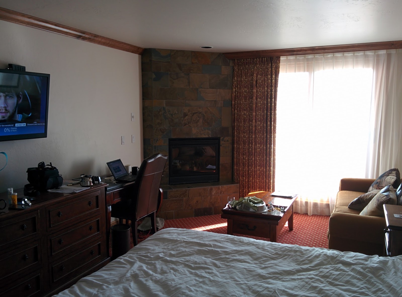 It was nice! Not top class luxury, nor Snake River Lodge and Spa luxury, but cleaner than the Riverside Inn, in Moab, and much better than the Hanksville Inn - though for $170 a night it was nowhere near value for money. It was clean, and everything in it worked - It was basically one of a row of cabins (that reminded me from the outside of the slave cabins described in Roots) that had a bed, two comfy armchairs, a counter top with two high chairs, a mini kitchen with cute mini appliances and a shower room with toilet. It had everything we needed and the decor was homely. We liked it!