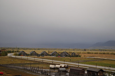 The foul weather gave us a great excuse to hole up in our room and watch cable TV! We were well overdue the rest. We ate Chinese Take Away from the night before (no ranchers daughter here!) but vowed to order breakfast to the room the next morning, making full use of the luxury before we hit West Yellowstone and the mysterious property we'd committed to for $170 per night that had no website and only very bad reviews! The view from our luxury room conjured up images of pioneers heading West. How did they manage without expedia, and hotwire and Holiday Inn?