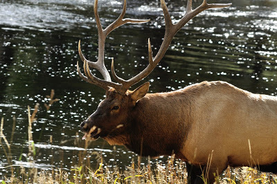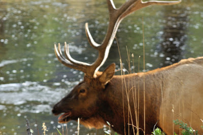And then right beside the road, between Madison and West Yellowstone, we met this guy...a magnificent bull elk!