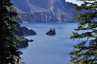 First stop - Crater Lake, formed when a huge volcano called Mount Mazama erupted in 5700BC and then collapsed in on itself. The eruption threw up 150 time more ash than Mount St Helena's 1980 eruption. The resulting Caldera filled with water. It has no rivers that run into it and its only catchment is direct precipitation. It is the deepest lake in the USA.