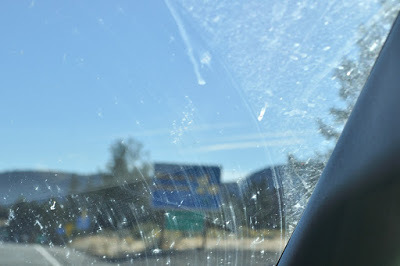 Honestly the sign says "Welcome to California" but the windscreen was so icky that the camera could not focus on anything but smeared bug!