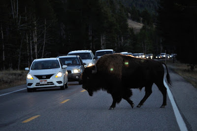 But we hadn't time to stop! We'd been warned about "Bison Jams" and wanted to get checked in, eat and return to the park well in advance of sundown so we could relax and absorb the sights.