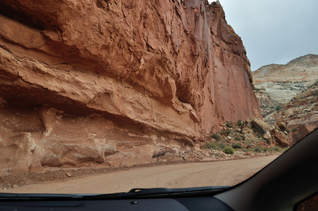 When we finally made it to Capitol Reef we decided to explore a little, rather than shoot straight through, and ended up taking our faithful little Prius down some dirt tracks! It felt like we were taking her hiking with us – lazy hiking, since she did all the work.