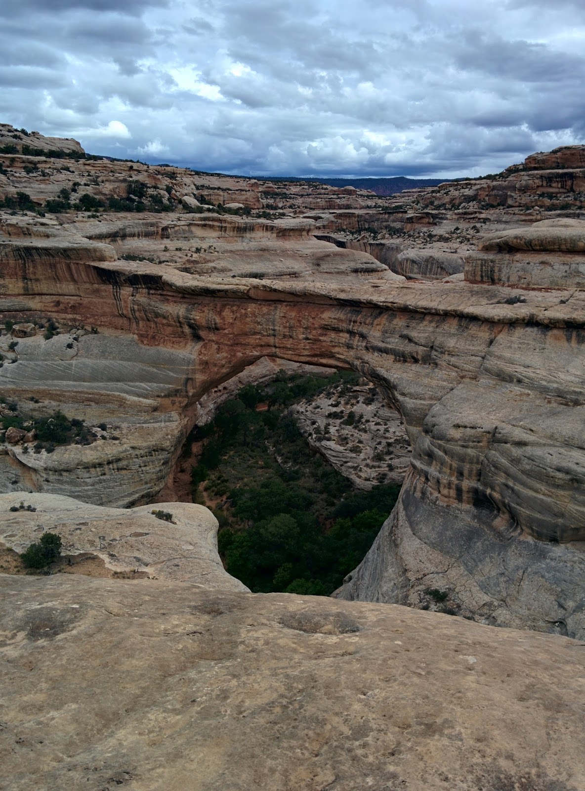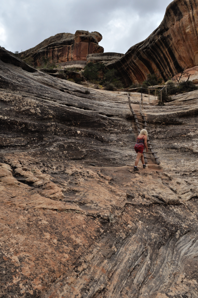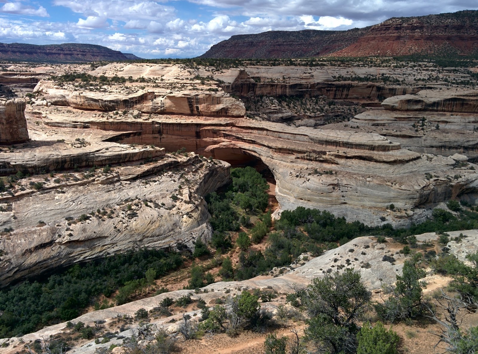 There are three bridges to view on a 9 mile loop. At each one you can take a hike down beneath them. This involves step hiking in often extreme temperatures. We chose to hike down to the first one we came to, Sipapu Bridge.