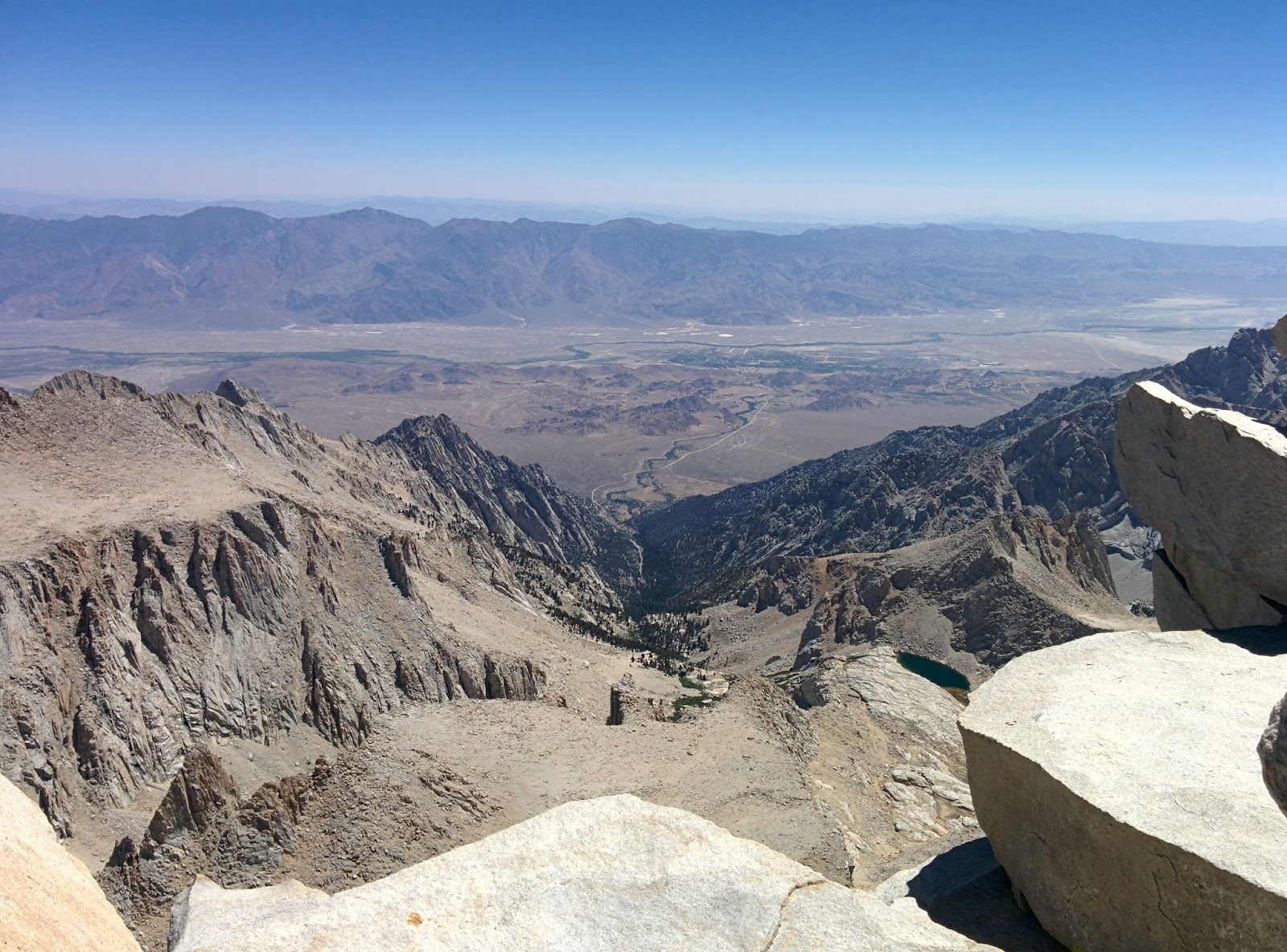 View from the summit of Mt Whitney looking down at Lone PineRemember where the big red arrow pointed in the first photo? That's where we were standing!