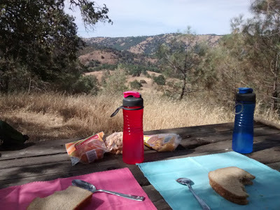 Then we attempted Murietta Falls - a "butt kicker" as described by the trail book, leaving from Del Valle Lake along the Ohlone Trail. We had 20lb packs and started off strong, but the steep descent of 500ft into a valley and ascent up the other side broke our spirits. We'd not been mentally prepared to descent mid-hike, and we worried that we'd run out of steam to make the 500ft ascent on the way home. So we turned back, a 1.5 miles short of our goal.