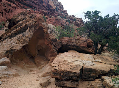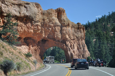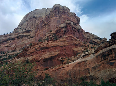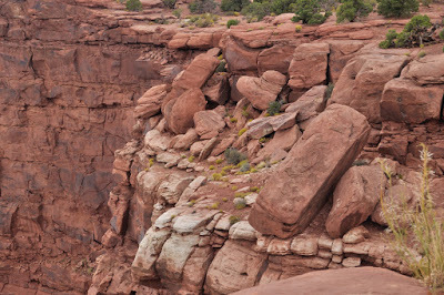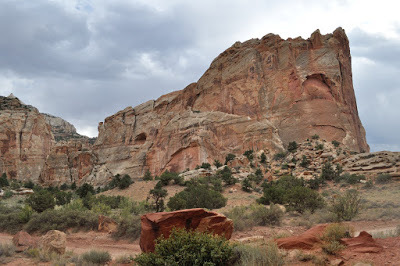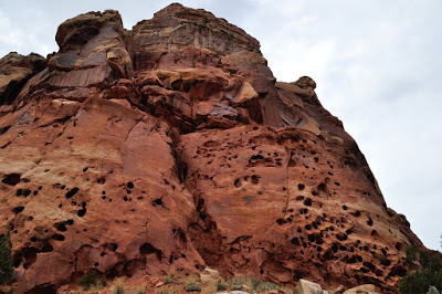 The views of rose colored cliffs, buttes, standing rocks, rock walls with hanging caves (sometimes called arches) continued to draw gasps of amazement from us such that our conversation for miles upon miles seemed to be a continued exchange of “Wow!” “Look at that!” and at one point “Oh God , I can’t stand it anymore – it’s too beautiful!”