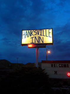 It was nearly full on dark when we reached Hanksville, the next town on the road. No point driving in the dark and missing anything. One thing I found interesting about Hanksville is that it is only 7 miles from the Mars Desert Research Station. Not hard to imagine what inspired them to base themselves here. The landscape sure did look pretty Martian at times.Hanksville is a town with too motels. One had a "No Vacancy" sign, but the other, the Hanksville Inn (the less salubrious looking place,) hadn’t. We went into the office of the Hanksville Inn and asked if they had any rooms left. The guy asked if we had a reservation. My heart sank. Next town was 130 miles away…