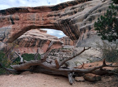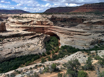 Owachomo BridgeFrom Natural Bridges we headed to the Needles, a more remote section in the southern area of Canyonlands National Park. This part of the park got its name from the rock pinnacles banded in red and white, with sculptured rock spires, arches and canyons.