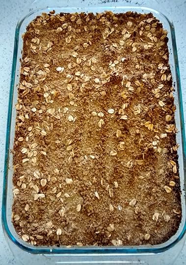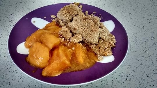 So this is where I invented my own sauce to go with the crumble. When I researched the recipes, every single one of them added cinnamon. It's not that I don't like cinnamon, but why does it have to be added to every single dessert in America? Apple pie, pumpkin pie and now this?