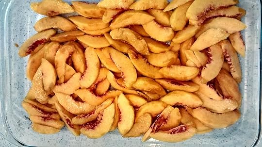 My wonderful neighbor, Al, let me strip his tree of the ripe peaches that were threatening to drop. They were simply perfect.