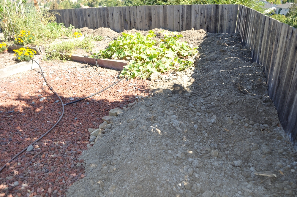 The solarization of the soil only goes down to six inches or so. The bed was three times as deep in its deepest part, so I decided to put down some cardboard to block weeds.