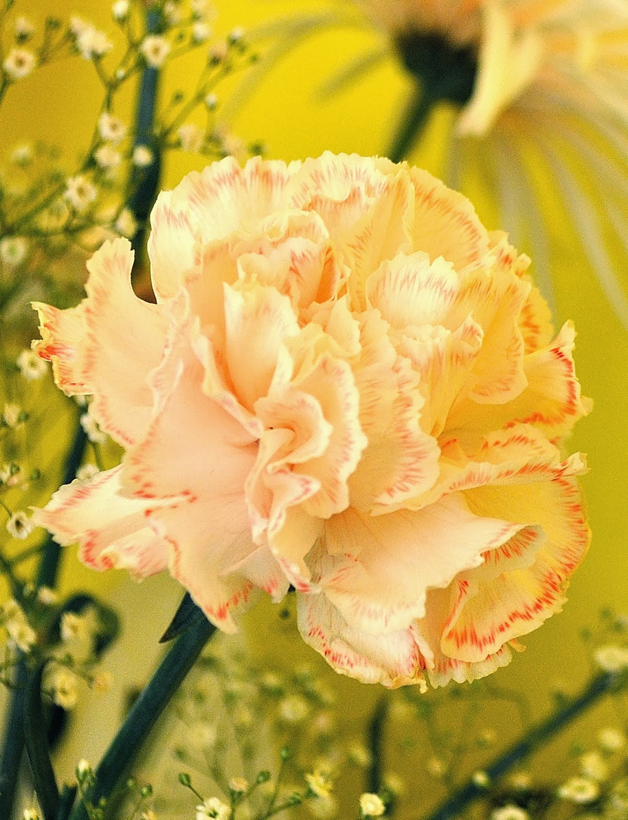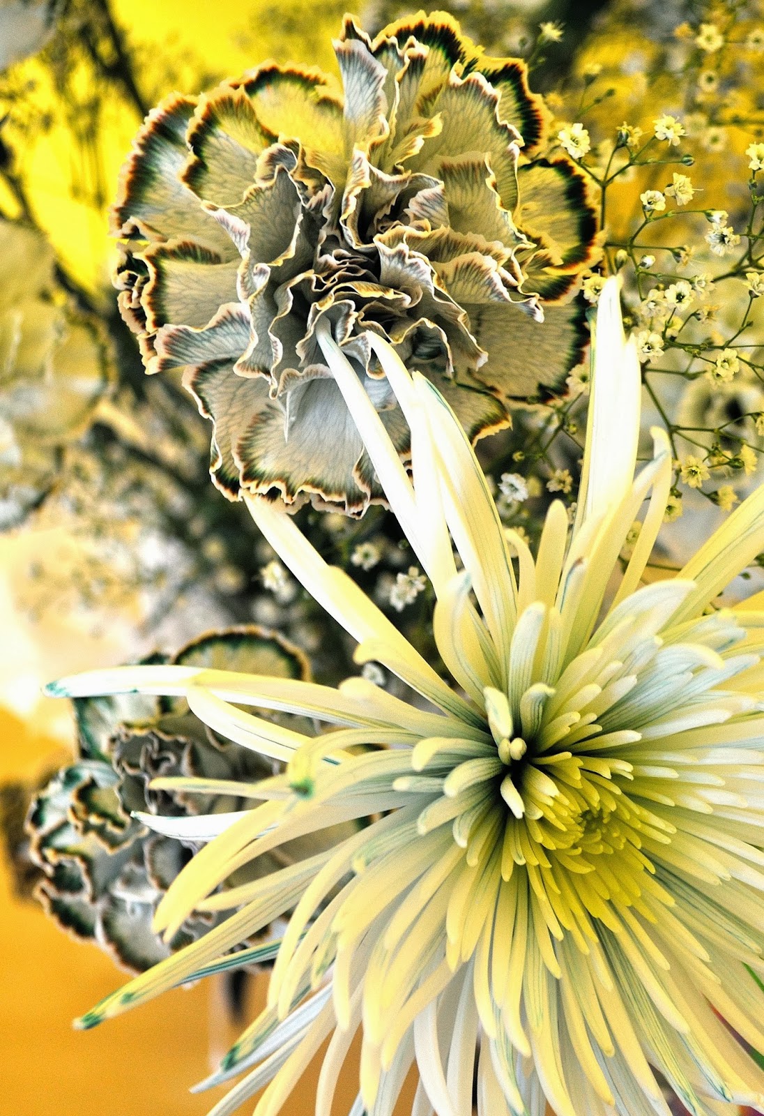 When I added black food dye, the white carnations developed a black stripe and the chrysanthemums even started to show some color.