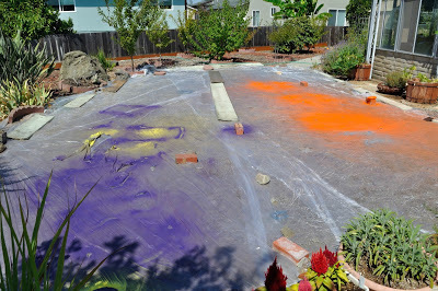 It was all so easy since I had a plastic tarp laid out already - the lawn solarization is technically done - the six weeks are up, and I don't mind if the plastic tears now. It became the painting studio. I was impressed at how sturdy the plastic was after six weeks of sun exposure.