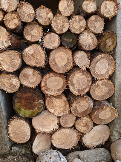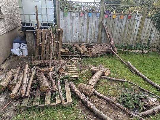 Last autumn, our neighbour chopped down a gigantic Leyland Cypress that had bordered our properties. It’s considered by some as an invasive tree, but it’s always sad to see a large tree being taken down. I did welcome the extra sunlight in the garden, though. Some of the larger branches had fallen on our side. We were so grateful when a Good Friend chopped them into a manageable size for us. I decided to use these logs to make a raised bed to border the pond and fill them, in part, with the displaced earth.