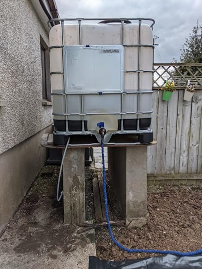 added a little decorative log pile to hide the ugly gap beneath the water butt…