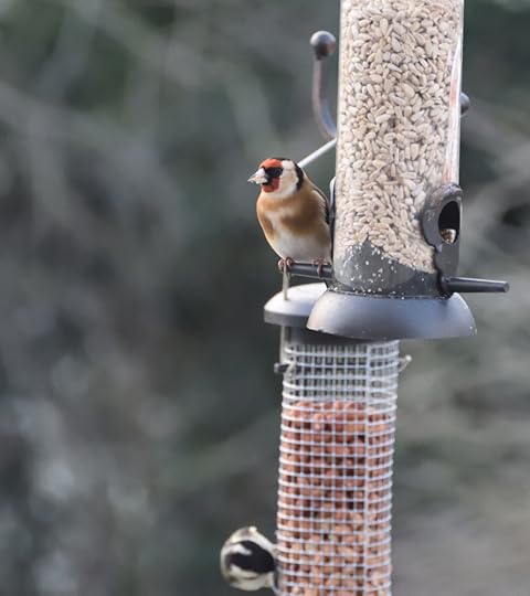 Santa brought me a snazzy new bird feeding station this year and it’s brought my feather garden to life big time. A new visitor to the garden prompted me to get the “big camera” out again. It’s the first time I’ve seen a goldfinch at the feeders, and I loved that our regular bluetit was okay with sharing a table. No social distancing here!