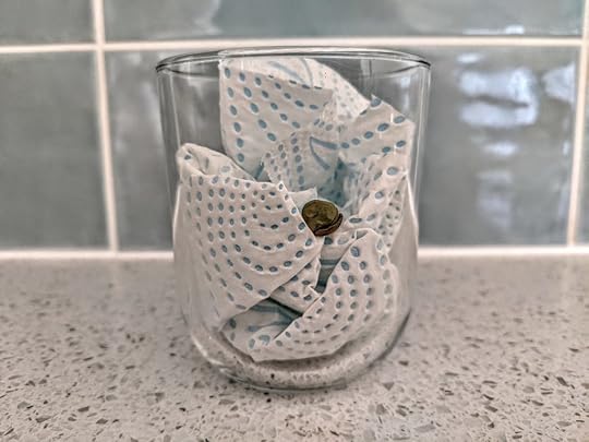 ‘Plant’ seed. Set your seed up so it is easy to view and measure. I would use a glass or a jar with scrunched up paper in it – something that is absorbent, like kitchen roll – toilet roll is no good as it will not hold its structure – and it’s not to be wasted at times like this. In school, we used blotting paper but it seems like a real relic of the past now.