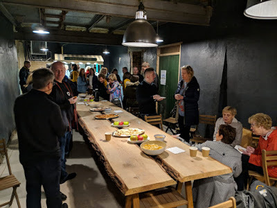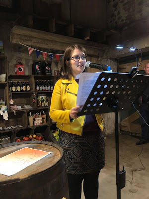 People seemed to arrive more on time than usual, possibly the lure of warm mulled cider on a wet evening, or more likely - as was our case- afraid of getting lost in the wilderness of the Armagh Orchards.