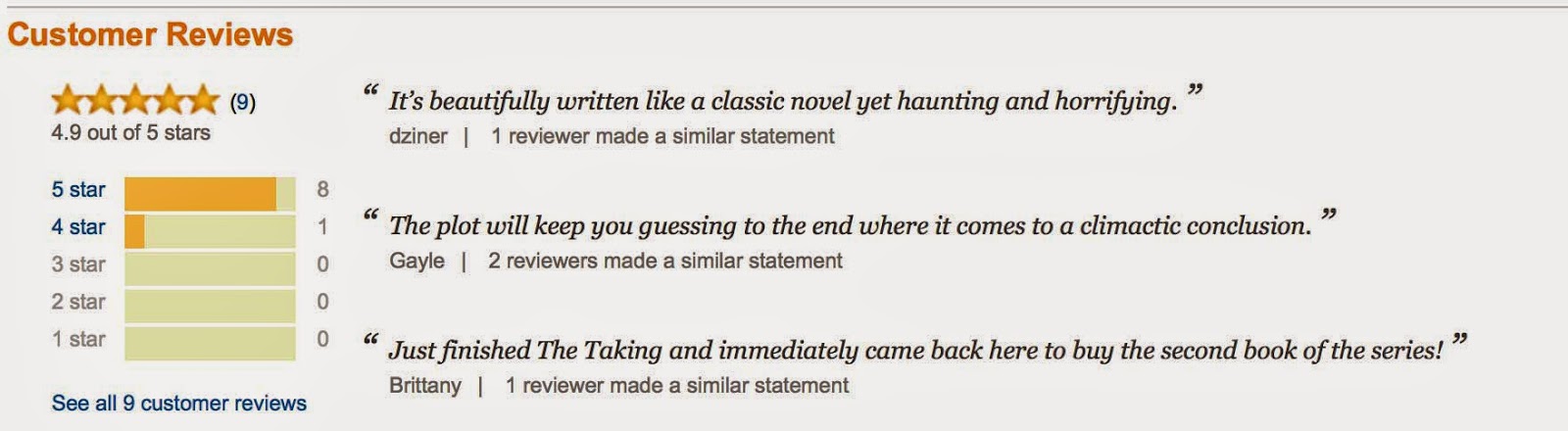 I've saved the most exciting news for last. This week, I've received the first set of recordings from The Taking audiobook narrator, Maria Marquis. She's amazing! Listening to her interpretation, I'm experiencing the characters and story in an entirely new light. The secrets seem deeper; the shadows, darker; the goodness, brighter. I feel fortunate to be working with a talented and hard-working producer and can't wait to hear the whole thing.
