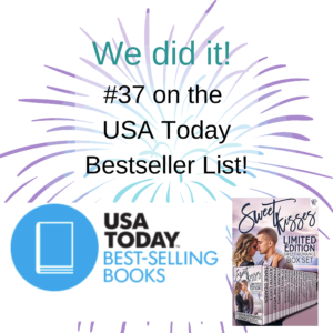 Hooray! I’ve been happy dancing all morning, ever since we learned that the Sweet Kisses box set ranked #37 on the USA Today bestseller’s list.