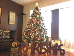 Kimberly Krey uses all the ornaments her four children have made over the years. She says it’s getting a bit crowded, but they love it. I love the big letters in front of the tree, what a clever idea.