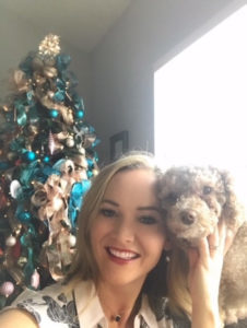 And here is Taylor Hart with her gorgeous tree and sweet doggo. I love the turquoise ribbon. So pretty!