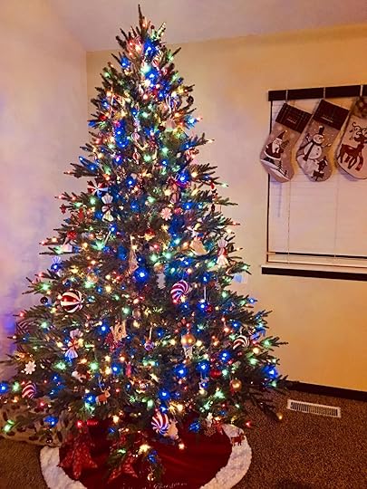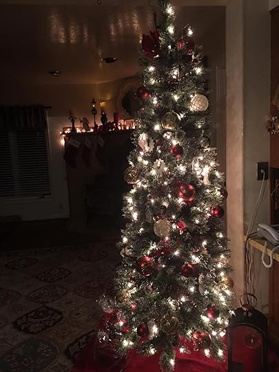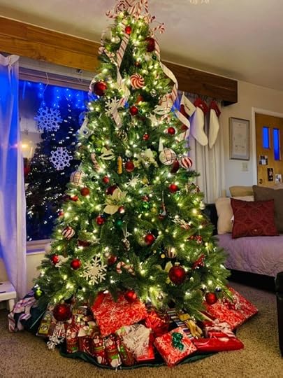 And Rachelle J. Christensen has a fantastic tree that reminds me so much of the fresh trees my dad used to bring down from the mountains when I was a kid. She says it looks kind of funny because it tipped over and they had to redecorate. Love it!