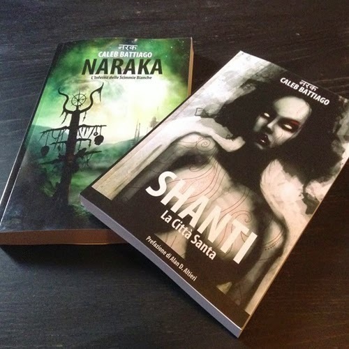 I primi due romanzi della trilogia Naraka, "Naraka - L'Inferno delle Scimmie Bianche" e "Shanti - La Città Santa", da oggi sono disponibili anche in edizione cartacea sullo store CreateSpace (an Amazon Company). Ecco i links per acquistare le vostre copie, sotto trovate tutti i dettagli di queste nuove edizioni. Acquista Naraka in edizione cartacea , A cquista Shanti in edizione cartacea. Naturalmente i due romanzi restano disponibili su Amazon anche in formato eBook/Kindle. A breve i due libri cartacei saranno disponibili anche sullo store Amazon. Rispetto alle edizioni digitali, i due romanzi in versione cartacea contengono alcune illustrazioni di Daniele Serra. Ma non è tutto, tra qualche giorno sarà disponibile anche un nuovo volume, sempre in cartaceo, contenente tutti i racconti, con una nuova cover realizzata da Daniele Serra. Ecco i dettagli e tutte le info sulle nuove edizioni cartacee della Trilogia Naraka, in attesa dell'ultimo titolo in uscita nel 2015, che sarà pubblicato sia in formato digitale che cartaceo.