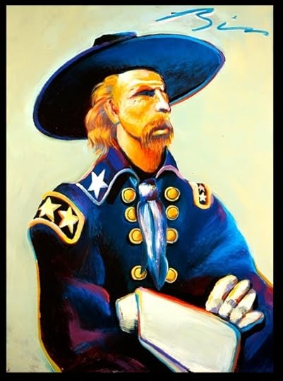 ©Earl Biss, General Custer in Blue and Green, 1996Estratto dal racconto "L'Inferno di Lunghi Capelli"(...) I giaguari Cheyenne, Sioux e Lakota accerchiano facilmente le truppe americane, ringhiando famelici. Stringono sempre più la loro morsa a ferro di cavallo, il loro respiro soprannaturale penetra tutti i pori dei brandelli del 7°. L’orlo della radura viene punteggiato dai colori di battaglia, macchie di rosso, di blu, di giallo si muovono, apparendo e scomparendo, tra lo scintillare delle lame. Gli occhi del colonnello putrefatto sanno guardare più lontano dei suoi uomini, inquadrano le facce sudate dei capi dalle molte penne, a cavallo a qualche centinaio di metri, che si stanno già dividendo il bottino di carne. Cavallo Pazzo, il bastardo, Capo Coltello, Toro Seduto, Strada Grande, Re Corvo, Pioggia in Faccia, White Bull, Kill Eagle e tutti gli altri dalla pelle vecchia. Un cerchio che scalcia con gli zoccoli, dove si parla di morte, di scalpi da collezionare, di ornamenti umani. Ma nessuno di loro vuole un pezzo di Capelli Lunghi, di Custer, il demiurgo con la sciabola, che ha affettato parecchi dei loro villaggi, tritando donne e bambini, cucinando spezzatino di indiani. Custer vede lontano, ovunque: zoom sulla lingua di Cavallo Pazzo che lecca la lama del suo coltello, spaccando in due la lingua nera, primo piano di Stella Rossa, una delle sue guide Arikara, la sua faccia deformata, allungata, quasi senza più ossa, mentre i giaguari Sioux gli strappano le gambe. Il traditore non guiderà mai più l’uomo bianco tra i sentieri sacri.Gli ultimi spari, poi solo grida isolate. La linea di difesa degli uomini blu di Custer ha ceduto in appena quindici minuti, i giaguari sono troppi e il sangue americano sporca quella intatta radura. Dawson viene trascinato via e appeso per le gambe a un albero, è ancora vivo, dondola lentamente osservando la terra verde, la bocca che dovrà masticarlo, molto presto. Un guerriero Cheyenne ha acceso un fuoco accanto a lui, gli ha tagliato il naso e un orecchio, poi continuerà col resto, curioso di assaggiare la carne degli uomini blu, condita dalla paura. La vescica di Dawson diventerà una borraccia, appesa vicino allo scalpo. A Morris non sta andando meglio, il giovane ufficiale è un trofeo importante, se lo stanno litigando. Le sue braccia vanno a sud, il busto a ovest, la testa corre via sotto il braccio di Giovane Nuvola, un orgoglioso Unkpapa. (...)
