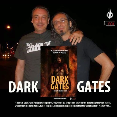 Nuova uscita in lingua inglese, per Kipple Officina Libraria: "Dark Gates - Roads to Hell and Limbo", disponibile in formato ebook su Amazon . Come vedete dalla splendida, arcana illustrazione di copertina, realizzata da Ben Baldwin, anche stavolta non sarò da solo, come per la raccolta di poesie dark "Venus Intervention" scritta in collaborazione con il premio Bram Stoker Awards Corrine De Winter. Il compagno di avventura stavolta è Paolo Di Orazio, firma storica dell'horror nostrano. "Dark Gates - Roads to Hell and Limbo" contiene quattro racconti tra horror e visioni distopiche: i miei "Lu'lu" e "Limbus" (versioni in lingua inglese dei racconti "Kaferdammerung" e "Limbus", pubblicati in Italiano nella raccolta "Limbus - Trilogia di Scarafaggi) e due pezzi di Paolo, "Hell" (versione in lingua inglese del racconto "La Vendemmia", da "Madre Mostro") e l'inedito "Brain Dama". Ma non è tutto, l'eBook contiene anche la prestigiosa introduzione di Gene O'Neill, grande autore di genere statunitense vincitore del Bram Stoker Awards. Un'altro premio Bram Stoker Awards ha collaborato a questo progetto: l'editing dei testi è stato curato da Benjamin Kane Ethridge. Dunque, due autori italiani (anzi, romani) sbarcano insieme sul mercato internazionale, notizia non da poco. Speriamo di farci valere e di riuscire a terrorizzare le genti d'oltreoceano. Sotto trovate l'introduzione integrale di Gene O'Neill a "Dark Gates".