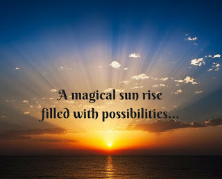 Have you ever woken up at dawn? Try it out sometime. It's an exhilarating experience to watch the first rays of sunlight hit your window pane and bounce inside the room. I like to think of the rising sun as a harbinger of new hope, a messenger greeting us with a endless possibilities, a new beginning---an opportunity to leave the past behind and start afresh.