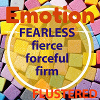 F – FEARLESS, flexible, forgiving, fun, furious, fame, fanciful, fascination, flourish, festive, fierce, fragile, fit, fore-site, frank, forthright, fortunate, feel, firm, focus, forceful --> the negative for the story would be FLUSTERED.
